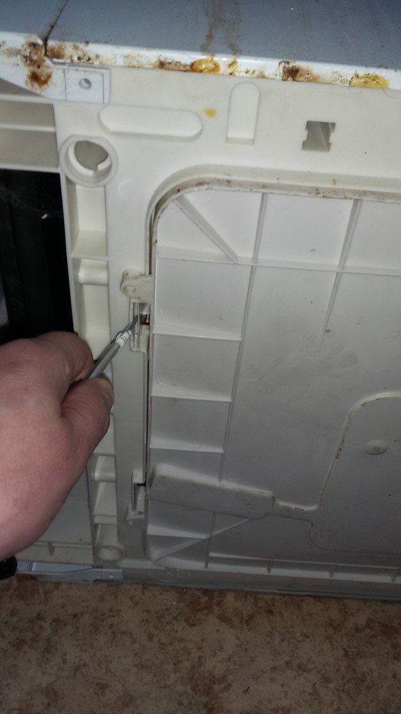 - Снимаем поддон посудомойки, отжав защелки, которыми он держится.